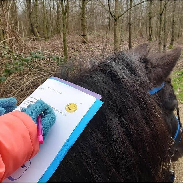 Wanneer wij in de omgeving van de paarden werken spelen we bijvoorbeeld leerzame spellen, ontdekken we beestjes in de natuur, doen we klusjes of ontspanningsoefeningen.
